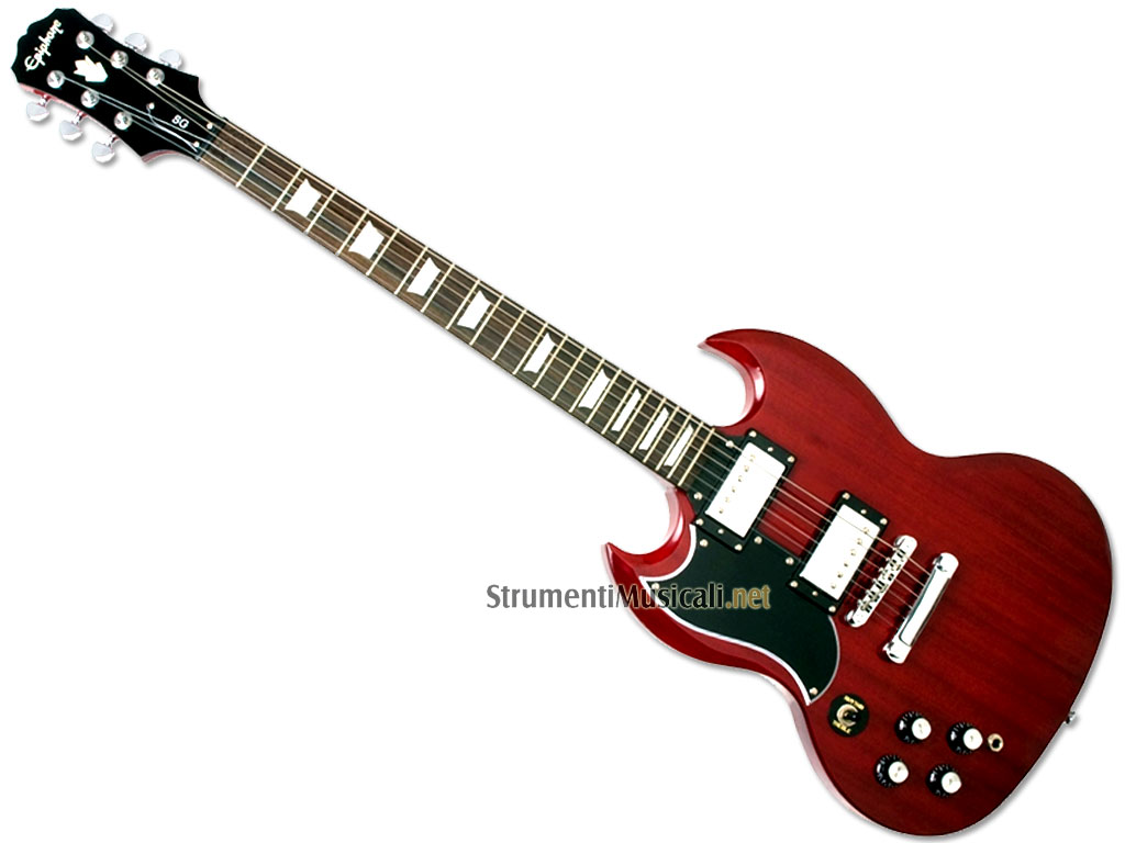 La chitarra elettrica Epiphone G-400L (mancina) ha il leggendario stile chitarristico SG. È dotato di corpo e manico in mogano con tastiera in palissandro. Il sottile profilo del manico della G400 la rende facile e veloce da suonare, mentre l'hardware cromato e gli intarsi a trapezio la rendono molto piacevole da guardare. Due humbucker Alnico V producono toni pieni e graffianti. I controlli comprendono due volumi, due toni più controlli switch a 3 vie.