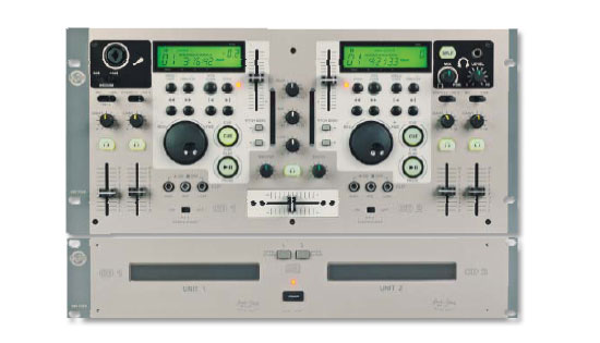 Doppio CD player professionale con mixer integrato, composto da unità di comando/mixer + unità di lettura, montaggio a rack (4+2 U), display retroilluminati, Open/Close, Skip, Play/Pause, Stop, Cue, Quick Start (0.015 secondi), Relay (switch automatico dei 2 player), Continue/Single (Single, Continue, Single Relay, Continue Relay), Outro (ascolto ultimi 30 secondi di tutti i brani), Search, Bend, Pitch +/-16%, Jog Dial (Pitch, Bend e Search), Time/Stop, CD Fader Start, buffer 10 secondi, uscite analogiche e digitali. Mixer stereo a 4 canali, con ingressi Mic x 2, Line x 2, Phono x 2, CD x 2 e ritorno effetti (stereo), uscite Main (principale), Booth (cabina), mandata effetti (stereo), cuffia e per controllo a distanza Start/Stop Phono 1-2, Gain ch 1-4, volumi ch 1-4, Master, Booth e cuffia, Crossfader, Pan cuffia/programma, EQ Killer generale con toni Hi, Mid e Low, selettori sensibilità microfono (2 livelli), selezione ingressi ch 1-4, ascolto in cuffia On/Off ch 1-4, ascolto/preascolto, Split cuffie On/Off, soppressione frequenze Hi, Mid e Low On/Off ch 1-2 e 3-4, CD FaderStart On/Off automatico ch 1-2 e 3-4, 2 indicatori di livello a LED, connettore di messa a terra. Alimentazione 230V.
