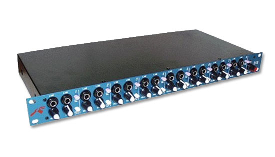 DI box/mixer a 8 canali, ognuno con In jack 1/4" sbilanciato/bilanciato, Out XLR bilanciato, link Out jack 1/4", controlli di volume, pan, pad e earth lift, master Out stereo RCA, master volume, In link stereo RCA, alimentatore interno 110-220V, formato rack 1 unità.