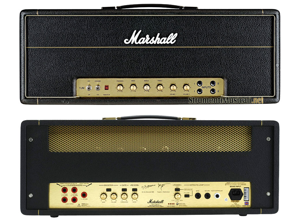 La testata valvolare Yngwie Malmsteen Signature YJM100 per chitarra da 100 watt è stata sviluppata in stretta collaborazione con il leggendario trituratore di corde Neo-Classico, Yngwie Malmsteen. L'YJM offre il perfetto equilibrio di suoni vintage (basato sul modello 1959) e comfort moderni (Booster, Noise Gate, FX Loop e tecnologia Marshall EPA), il che la rende uno strumento perfetto per performance live o registrazioni "plug-in and play".