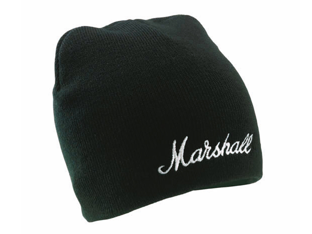 Cappellino in lana nera con logo Marshall bianco.