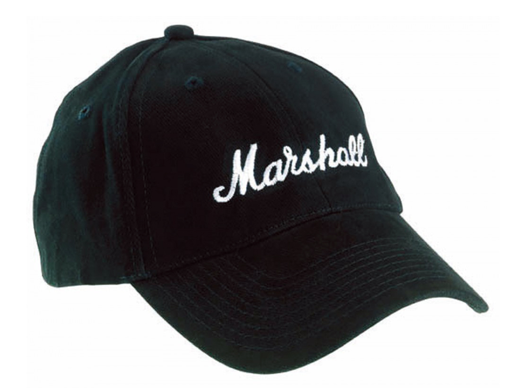 Cappello da baseball nero con logo Marshall bianco.