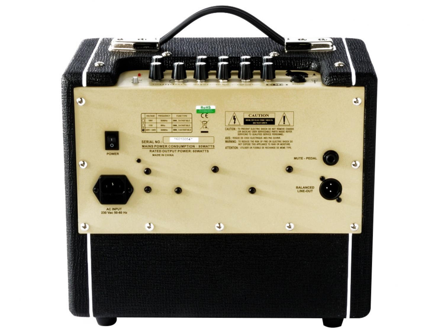 AC60 è un amplificatore progettato appositamente per le chitarre acustiche in versione combo perfetto per i live grazie alla sua potenza di 60 Watt. L'amplificatore dispone di 2 canali (jack e XLR) ciascuno con gain ed equalizzatore a 3 bande dedicato. Il canale 1 dispone di effetti di modulazione Chorus/Delay, controllo per modificare la quantità di effetto e Reverb. Lo switch Phase permette di invertire la fase sui canali 1 e 2. L'AC60 dispone di un'uscita di emulazione bilanciata, Aux in con controllo di livello e la possibilità di collegare un footswitch per il muting dei canali, utile nelle situazioni live, ad esempio per il cambio chitarra.