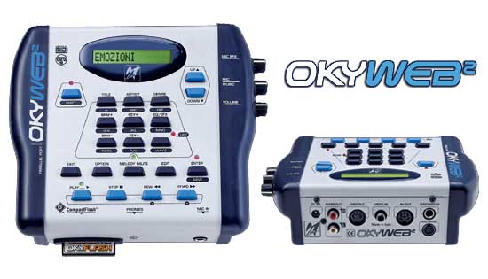 Okyweb 2 è un vero gioiello di tecnologia, memorizza e suona migliaia di Basi Musicali, visualizza il testo e gli accordi delle canzoni, include un Expander MIDI e un Micro Mixer dotato di Canale Microfonico, Multi-Effetto ed Equalizzatore. Okyweb2 si collega al PC, accede ad Internet, legge e converte i files MIDI Standard e MF3 e adotta il nuovo rivoluzionario formato a 32 tracce MF5.