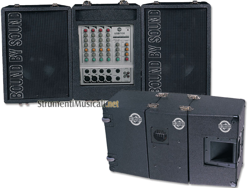 • Composto da: mixer amplificato a 4 canali Mic/Line (XLR + Jack)