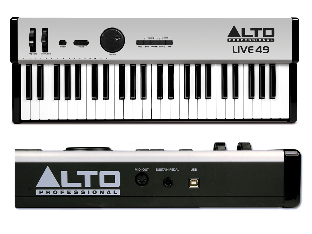 Alto Live 49 Tasti USB Keyboard Controller è dotato di tasti sensibili alla velocity per un modo di suonare veloce e reattivo e per le registrazioni. L'Alto Live49 è dotato di Pitch Bend, Modulation, Sustain input, di Split performance e pulsanti Octave Shift per un range esteso della tastiera. Alto Live 49 è ideale per applicazioni live e studio.