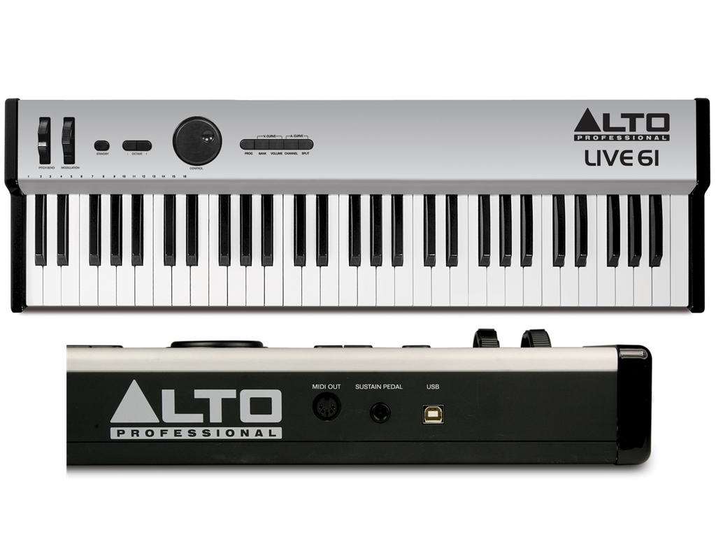 Alto Live 61 Tasti USB Keyboard Controller è dotato di tasti sensibili alla velocity per un modo di suonare veloce e reattivo e per le registrazioni. L'Alto Live61 è dotato di Pitch Bend, Modulation, Sustain input, di Split performance e pulsanti Octave Shift per un range esteso della tastiera. Alto Live 61 è ideale per applicazioni live e studio.