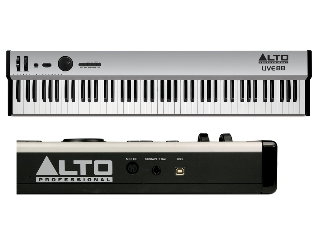 Alto Live 88 Tasti USB Keyboard Controller è dotato di tasti sensibili alla velocity per un modo di suonare veloce e reattivo e per le registrazioni. L'Alto Live88 è dotato di Pitch Bend, Modulation, Sustain input, di Split performance e pulsanti Octave Shift per un range esteso della tastiera. Alto Live 88 è ideale per applicazioni live e studio.