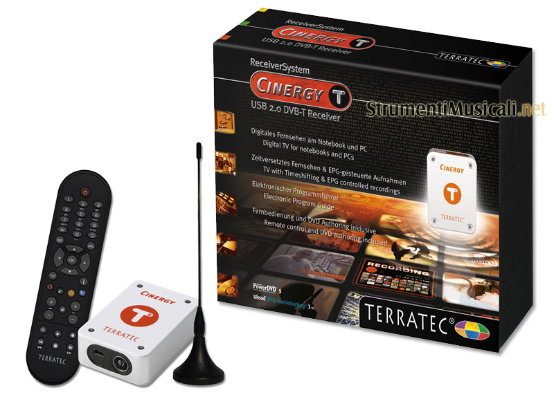 Cinergy T² (si legge: T square) è un dispositivo esterno USB 2.0 che permette la ricezione TV e radio del segnale digitale terrestre sul vostro personal computer, tramite il normale cavo antenna del vostro impianto di casa o on the road per mezzo dell'antenna indoor con base calamitata inclusa.