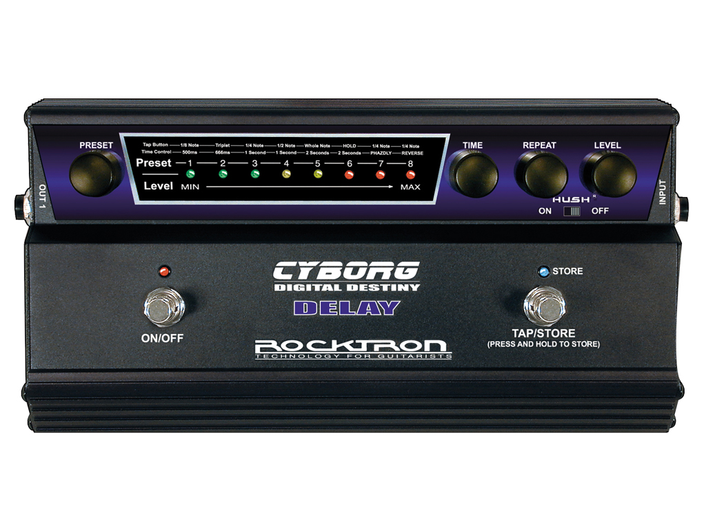 Rocktron ha progettato la serie Cyborg attorno ad un motore DSP Motorola "state-of-the-art". Rocktron ha incluso la sua tecnologia di riduzione del rumore HUSH e, inoltre, i pedali digitali della serie Cyborg sono completamente programmabili e controllabili via MIDI. Possono essere concatenati e controllati da un unico controller MIDI. Puoi iniziare con 8 Preset accessibili istantaneamente per accedere a suoni sorprendenti. Il pedale Cyborg Digital Delay consente di usare 64 preset utente - 8 modelli preimpostati che possono essere modificati dall'utente, più 56 modelli utente preimpostati modificabili e accessibili il tramite cavo MIDI Breakout opzionale.