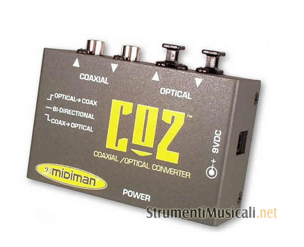 Convertitore audio digitale bi-direzionale da S/PDIF coassiale a S/PDIF ottico e viceversa, con 1 In e 1 Out coassiali, 1 In e 1 Out ottici, 1 selettore a 3 posizioni (optical - coaxial, bi-directional, coaxial - optical), incluso alimentatore.