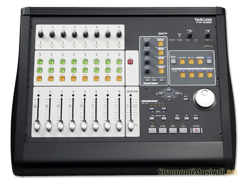 Grazie agli ultimi sviluppi della tecnologia FireWire, il Tascam FW-1082 si presenta come una soluzione completa per lo studio di registrazione, comprendendo interfaccia audio, MIDI e superficie di controllo in un formato compatto e conveniente. Sia che vi sitate avvicinando all'Hard Disk Recording, o che stiate valutando di rinnovare la vostra dotazione, l'FW-1082 è una scelta ottimale per un sistema di registrazione. Quattro ingressi microfonici, con alimentazione Phantom, permettono di registrare tracce multiple per sovraincisioni future e per mixaggi complessi. I primi due canali sono dotati di insert analogici, per sfruttare compressori, in modo da ottimizzare il livello di registrazione e per prevenire clipping in ingresso. Oppure potete sfruttare i vostri effetti preferiti per trattare il segnale. Fino a 8 ingressi linea possono essere registrati o mixati simultaneamente, come le uscite di synth, tastiere o processori multieffetti. La connessione SPDIF permette di collegare sorgenti digitali per una qualità allo stato dell'arte. L'FW-1082 comprende una interfaccia MIDI (2 porte In e 2 Out), per collegare diversi synth, tastiere e controller esterni La superficie di controllo offre 9 faders, motorizzati e sensibili al tocco, che si posizionano a seconda dei canali o dei banchi di canali che vengono richiamati dall'utente Una sezione di trasporto, completa di tasti, tastierino direzionale, e una manopola di Jog/Shuttle, permette di posizionarsi lungo il brano, senza dover toccare il mouse. I quattro potenziometri digitali permettono uin controllo preciso di Pan, EQ e/o mandate Aux dei canali del mixer dell'applicativo software*. Sono presenti un'uscita cuffie ed un'uscita monitor, con controlli dedicati. E' compatibile con le applicazioni di registrazione più diffuse, compresa la versione LE di Cubase, in dotazione bundle. Con le funzioni audio, MIDI e di superficie di controllo, l'FW-1082 è la postazione di comando perfetta per le applicazioni di Home Recording *La compatibilità con le applicazioni software dipende dalla disponibilità dei plug-in dedicati, sviluppati dalle varie software houses. Controllate la presenza di drivers aggiornati e di nuova documentazione disponibile.
