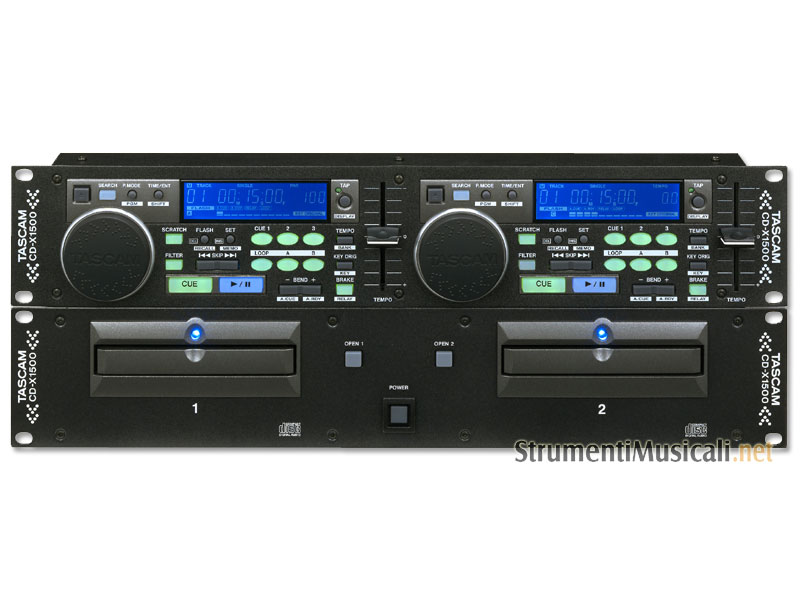 Il CD-X1500 è un CD-Player doppio, di classe professionale, dotato di tutte le funzioni necessarie per un DJ creativo, come loop, key original (Master Tempo), 3 punti di Cue e memoria anti-shock. digitaldj Excellence AwardInoltre, il CD-X1500 presenta diverse innovazioni e possibilità, unite ad una facilità di utilizzo sorprendente, e ad un prezzo ancora più sorprendentemente conveniente. IL CD-X1500 è il primo CD-Player TASCAM a supportare il TT-M1 Scratch Controller, che permette di controllare l'audio del CD tramite i più diffusi giradischi analogici. Con funzioni potenti ed esclusive, la qualità TASCAM, in un formato compatto (controller: 2U), il CD-X1500 è la scelta perfetta per un DJ "on the road". Un sistema con il CD-X1500 ed il mixer X-15 è la scelta ideale per DJ "mobili". Affidabile, robusto, versatile, compatto e conveniente.