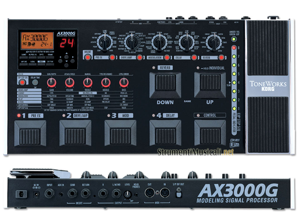 KORG AX3000G è una pedaliera multieffetto a modelli fisici per chitarra.