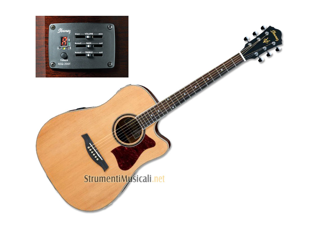 Chitarra elettroacustica naturale in edizione limitata. E' dotata del preamplificatore Ibanez AEQ200T a 2 bande con accordatore incorporato, ottimizzato per l'utilizzo con i pickups Ibanez Under Saddle.