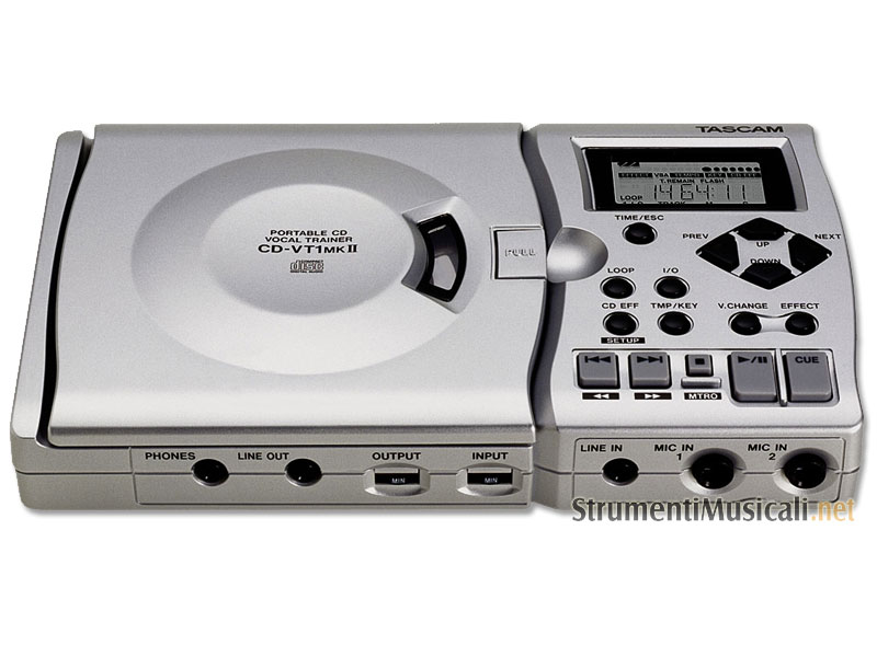 Con il CD-VT1mkII potete impostare loops a vostro piacimento, per ripetere la stessa selezione all'infinito, in modo da concentrarvi sull'apprendimento della parte che state studiando. Con un pedale esterno, potete dare inizio o fermare la riproduzione, o potete scorrere gli effetti. Inoltre avete sempre a portata di mano un accordatore cromatico, tanto per essere sempre a posto. Il CD-VT1mkII funziona anche a batteria, anche se è consigliabile avere sottomano l'alimentatore (opzionale) Tascam PS-PS5. Potete ascoltare in cuffia, o amplificare il segnale prelevandolo dalle uscite Line Output.