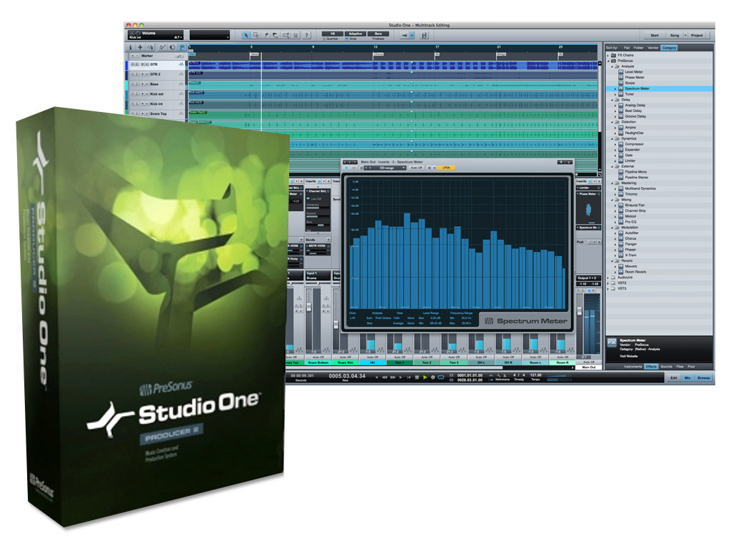 Studio One Producer 2 offre la possibilità di registrare, editare e mixare audio e MIDI, con moltissimi effetti a 32-bit e virtual instrument integrati nel software. Diversamente da altre DAW "entry-level" non vi sono limitazioni sul numero di tracce, sulle istanze dei plug-in o sulle funzioni di editing. Inoltre si aggiungono il supporto ReWire, la possibilità di utilizzare plug-in AU/VST di terze parti, e l'import ed export di audio in formato MP3. Studio One è un'applicazione innovativa per la produzione musicale che rende la registrazione audio, il MIDI sequencing e la masterizzazione audio semplice ed intuitiva. Nuovo codice, innovativo drag-and-drop, MIDI mapping e plug-in management, auto-configurazione con tutto l'hardware Presonus, qualità audio molto elevata, tracce illimitate con plug-in indipendenti, una pagina iniziale potente ed intuitiva che vi permette di gestire l'intero progetto.