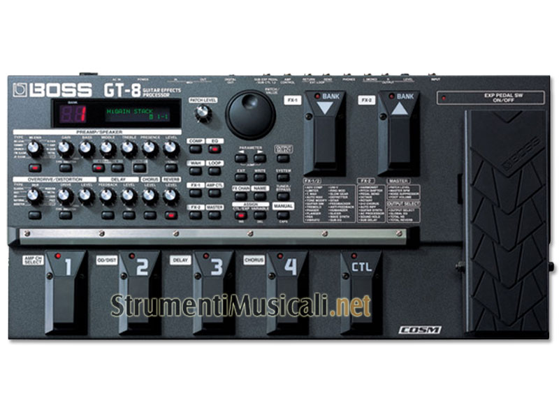 Se la GT-6 poteva essere paragonata ad un potente computer a processore singolo, la GT-8 può essere considerata un computer dotato di doppio processore. Questa maggior potenza tradotta in termini concreti si riscontra nel Dual COSM AMP (singolo nella GT-6) e nel numero degli effetti (44 contro 37 e 13 simultanei contro 11).Poter utilizzare due differenti modelli amp COSM in contemporanea apre al musicista orizzonti sonori e di effettistica del tutto nuovi. Unendo dinamicamente i due "mondi sonori" disponibili è possibile creare timbri dal carattere unico.