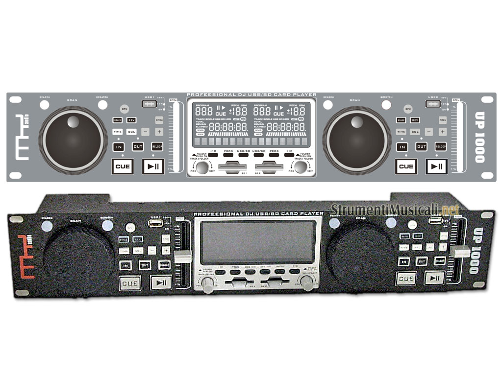 MYAUDIO UP1000 è un lettore professionale di SD e USB che integra, in un solo chassis in formato rack standard 19", due sezioni deck indipendenti che lo rendono un sistema pratico ed intuitivo, adatto sia per applicazioni Dj che per service audio