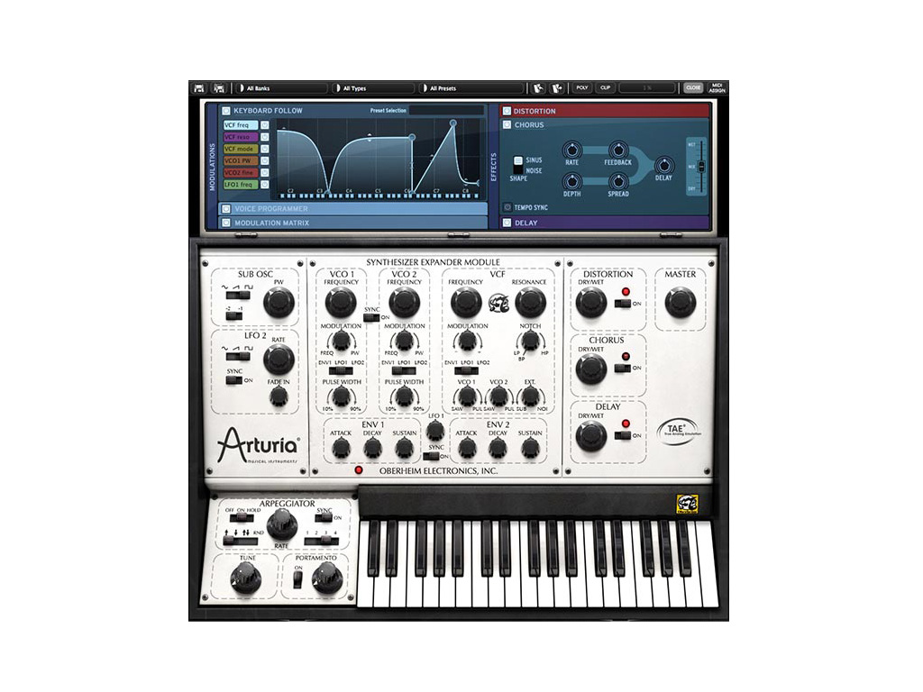 Il leggendario Oberheim SEM - Synthesizer Expander Module - ritorna per la prima volta come un software di emulazione di fascia alta, realizzato tramite l'esclusiva tecnologia TAE® di Arturia. Riproduce fedelmente il caldo timbro Oberheim SEM, Oberheim SEM V è anche polifonico, con una gamma completa di innovative funzionalità sonore. Preferito da artisti e produttori come Goldfrapp, Herbie Hancock e anche John Carpenter per la sua "grassezza" e l'unico spettro armonico, il suono Oberheim è un assoluto must per il vostro studio.