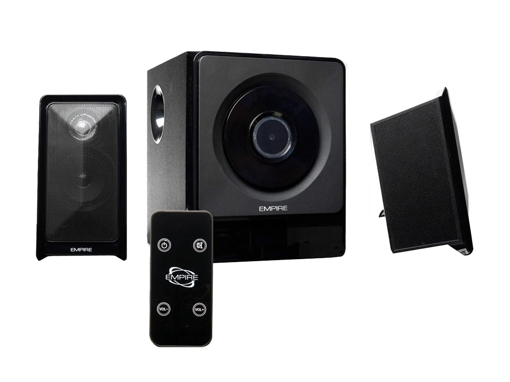 Il nuovo sistema Empire KS-4000 è un vero concentrato di tecnologia e prestazioni, un vero sistema per accogliere qualsiasi fonte multimediale. I satelliti, nella configurazione a due vie, si caratterizzano per un design hi-tech e sono composti da 1 tweeter da 1,5" ad altissime prestazioni ed un midrange full range da 3" per una grande spazialità e presenza del suono. Il subwoofer contiene invece al suo interno un driver da 5,25" che, grazie al particolare disegno del cabinet appositamente progettato per enfatizzare al meglio le basse frequenze, già dai 45 Hz garantisce una resa eccezionale. Sul retro del Sub, oltre all'ingresso AUX e le uscite per i satelliti, trovano posto controlli separati per bassi ed acuti mentre sul Telecomando Wireless in dotazione sono presenti il Mute e lo Stand-By oltre al controllo del volume. Il KS-4000 è in grado di generare una potenza totale di 90 Watt RMS (THD= 10%). Una nota importante per i veri audiofili: il KS-4000 è capace di una potenza in classe AB fino a 50 Watt RMS con THD inferiore allo 0,5%.