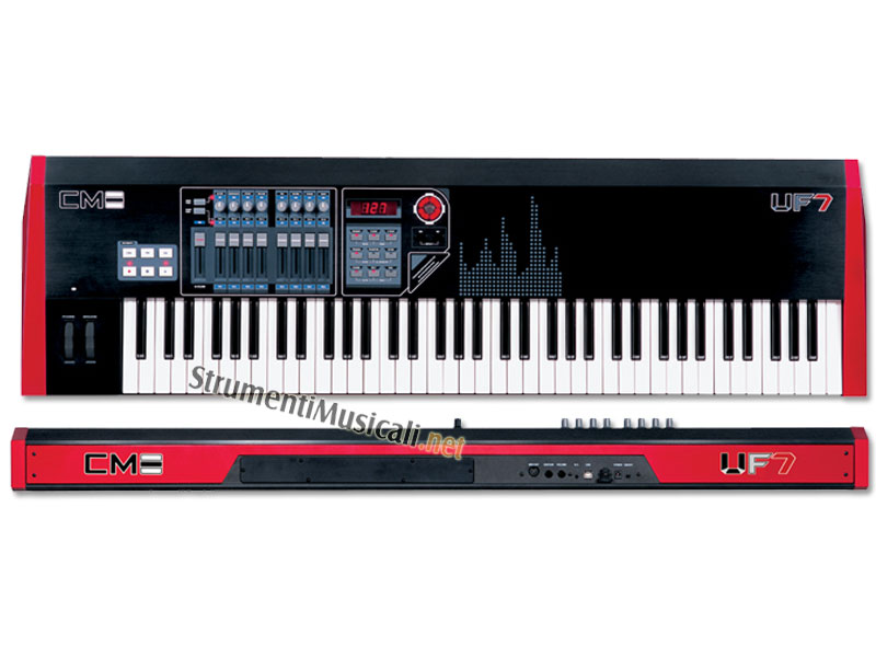 La nuova serie UF della CME offre una vasta linea di master keyboards MIDI/USB appositamente studiate per l'utilizzo integrato con il computer o stand alone. I 4 diversi modelli disponibili: UF5 (49 tasti), UF6 (61 tasti), UF7 (76 tasti) e UF8 (88 tasti pesati), permettono di trovare facilmente quello più adatto alle proprie esigenze. Tutte le tastiere dispongono di tasti semi-pesati (nella UF8 sono pesati), 2 wheel per il controllo del pitch-bend e della modulation, aftertouch, breath controller, 128 memorie, vari pulsanti di accesso immediato alle funzioni, possibilità di utilizzare il MIDI Out come uscita MIDI del computer attraverso la porta USB, espansione FireWire per l'audio integrato, ecc.... Con le tastiere della serie UF, potrete agevolmente avere il totale controllo della vostra musica in tempo reale. Inoltre sono anche presenti appositi pulsanti di trasporto (come REC, PLAY, REW), per controllare in remoto il vostro sequencer. In genere la maggior parte delle case costruttrici utilizza per la struttura esterna materiale plastico onde risparmiare sui costi, riducendo in questo modo il grado di robustezza e durata nel tempo Questo va a discapito dell'impressione visiva e tattile e, oltre a non essere elegante, non garantisce una qualità veramente professionale. Tutte le master keyboard della serie UF sono invece costruite con un accattivante corpo di alluminio nero satinato che garantisce una robustezza ed eleganza senza confronti.