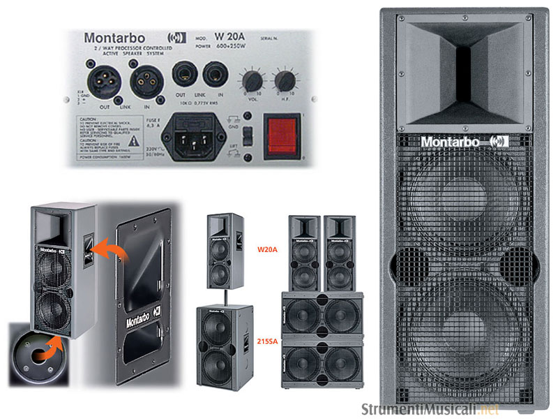 Nelle applicazioni che richiedono un ulteriore rinforzo della gamma grave l'abbinamento ottimale è con i subwoofer autoamplificati Montarbo 215SA e 218SA, entrambi con crossover elettronico stereo incorporato.