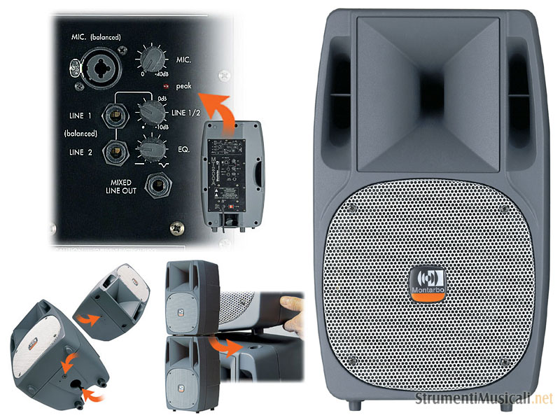 Nelle situazioni di utilizzo che richiedono un rinforzo della gamma grave, MT200A, trova il suo complemento ideale nei subwoofer autoamplificati Montarbo 112SA ed SW540 con crossover elettronico stereo incorporato.