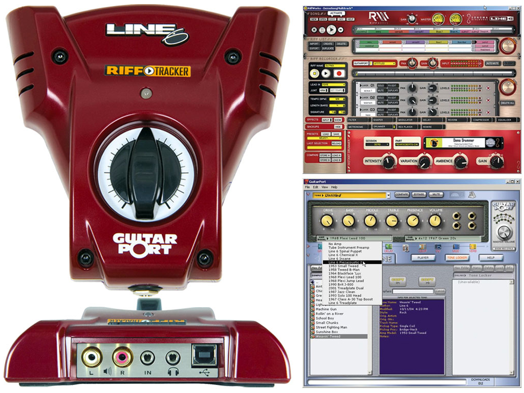 La Line 6 GuitarPort RiffTracker rende facile per registrare i vostri riff di chitarra prima che si perdano per sempre. Combinando insieme il premiato GuitarPort hardware/software, il software di registrazione RiffWorks, ed InstantDrummer si ottiene la più semplice attrezzatura di registrazione per chitarra di sempre. Con suoni presi direttamente dal PODxt si ottengono 16 modelli di amplificatori e più di 20 effetti di qualità. E avrai accesso a una libreria on-line di migliaia di suoni dei più grandi chitarristi, canzoni, band, e strumenti di tutti i tempi.