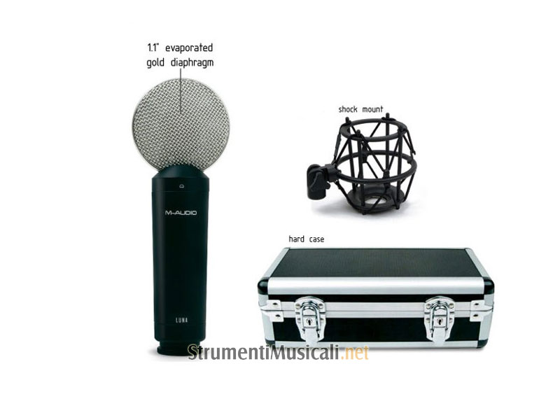 Microfono da studio di tipo cardioide a condensatore, con capsula in ottone, diaframma in oro evaporato da 1.1", spessore 3 micron, elettronica a FET in classe A, risposta in frequenza lineare sull'intera banda audio, adatto per la ripresa di voci, chitarra, piano ed altro, completo di supporto anti-vibrazioni e valigetta rigida.