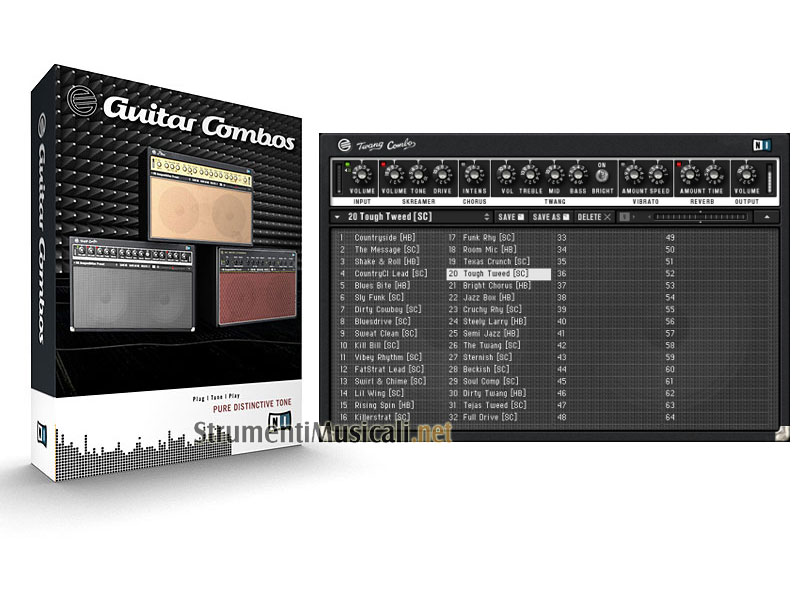 GUITAR COMBOS è in grado di ricreare perfettamente la sonorità di tre classici amplificatori combo, utilizzando la stessa tecnologia di GUITAR RIG che ha decretato un tale successo da parte della critica da consentirgli di vincere addirittura 16 premi awards. La confezione include AC BOX COMBO, PLEXI COMBO e TWANG COMBO. La sonorità prodotta dall'emulazione di questi famosi combo valvolari è assolutamente autentica, calda e ricca di dinamica. La loro natura flessibile consente di utilizzarli sia come applicazioni stand-alone, sia come plug-in. I 100 preset professionali inclusi costituiscono solamente un suggerimento rispetto all'enorme spettro musicale che può essere coperto da questi classici amplificatori e alle potenzialità offerte.
