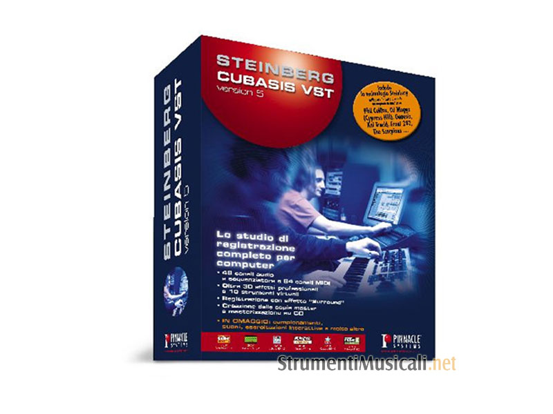 Create composizioni originali come i professionisti in modo veloce e facile con CUBASIS VST versione 5. Il software opera con 48 canali audio, 64 tracce MIDI, un mixer professionale con effetti in tempo reale e una grande gamma di strumenti virtuali. Componete canzoni, modificate i suoni, stampate gli spartiti e masterizzate i CD con suono surround. Avete mai immaginato di diventare un artista professionista? Bene, smettete di sognare e cominciate a creare con l'ultima versione di CUBASIS VST. Cubasis VST 5.0 vi dà ogni strumento di cui avete bisogno per produrre e registrare la musica come veri professionisti. Create grande musica con gli stessi strumenti utilizzati da professionisti. Fino a 48 canali audio (WAV e MP3), 64 tracce MIDI, un mixer in tempo reale e una grande gamma di strumenti virtuali, liberate la creatività! Componete canzoni, modificate i suoni a 24 bit e 96 kHz, stampate gli spartiti e masterizzate i CD con suono surround. Con Voice Detective, potete anche inserire tracce MIDI cantandole direttamente! STEINBERG CUBASIS VST incorpora 13 strumenti virtuali e più di 35 effetti professionali, tutti utilizzabili in tempo reale. Gli strumenti forniti includono emulazioni di sintetizzatori analogici classici, una batteria, chitarre elettriche e acustiche virtuali e un monaco cantante (singing monk)! I nuovi strumenti includono uno StagePiano, Drawbar Organ e il Model-E, una fedele emulazione analogica di un sintetizzatore. Le nuove caratteristiche aggiuntive includono un equalizzatore professionale a 4 bande con editing grafico, uno strumento di gestione del tempo, per allungare il tempo direttamente nella finestra dell'arrangiamento, e una copia di Pinnacle Systems Studio 8 LE per il montaggio video, perfetto per la creazione dei video musicali! I nuovi effetti includono un simulatore di amplificatore/cassa che riproduce i suoni di chitarra distorti e un filtro ''dance'' che vi il tipico sweep dalle frequenze basse ad alte che viene comunemente usato nelle canzoni ''house''. Ci sono anche un DeEsser per ottimizzare le voci e un Subbass Synthesizer per il raggiungimento di quelle note basse che rendono davvero grande il vostro subwoofer. La nuova sezione VST Dynamics include un compressore, un limitatore e un noise gate per aggiungere un tocco professionale alle canzoni. Con il software WaveLab Lite e Master Unit incluso potete portare le vostre canzoni a un livello davvero professionale e aggiungere tutte le sofisticate tecniche che i grandi studi di registrazione utilizzano quando producono canzoni di successo. Stampate anche la copertina e le etichette dei CD.