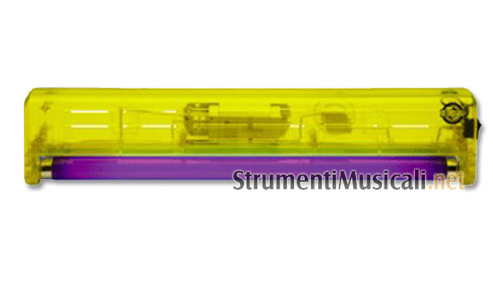 Lampada nera UV in alloggiamento fluorescente di color GIALLO, completa di tubo UV e starter.