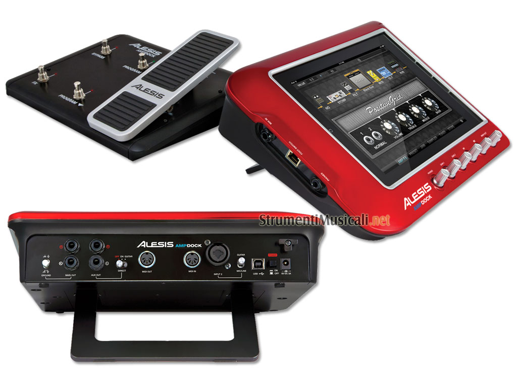 L'Alesis AmpDock consente di utilizzare la potenza del tuo iPad per modificare, amplificare e processare il segnale della tua chitarra. Costruito attorno la tecnologia dell'acclamato iO DOCK, l'AmpDock è uno strumento che permette al chitarrista di utilizzare l'iPad per applicare effetti, simulazione di cabinet, etc sul segnale della chitarra o del basso. AmpDock consente l'inserimento dell'iPad, o dell'iPad 2 in un robusto strumento portatile progettato per chitarristi e bassisti. Quando sei in studio, o dal vivo, l'AmpDock ti aiuterà a trovare la giusta sonorità in tempo reale, sfruttandone i controlli, gli ingressi e le uscite audio professionali compatibili quasi con tutte le App musicali per iPad. Gli ingressi audio professionali dell'AmpDock della Alesis includono un ingresso Jack da ¼" Hi-z per chitarra e basso, un ingresso combo (XLR/Jack) per il collegamento di microfoni, un'ulteriore chitarra, o altri strumenti. Le uscite sono disponibili su connettori combo (XLR/Jack) in formato bilanciato, con un selettore di impedenza guitar/line per il collegamento diretto ad una testata. Per l'utilizzo con i software MIDI compatibili su computer Mac e PC, AMP Dock include una porta USB. Un'uscita cuffie con controllo di volume dedicato ti permetterà di suonare in cuffia, esercitarti e/o provare gli effetti delle tue applicazioni installate sull'iPad. In dotazione con l'AmpDock troverai una pedaliera che ti consentirà di controllare parametri come il volume e altri messaggi MIDI di tipo control change (CC), bypass, program change e altri parametri.