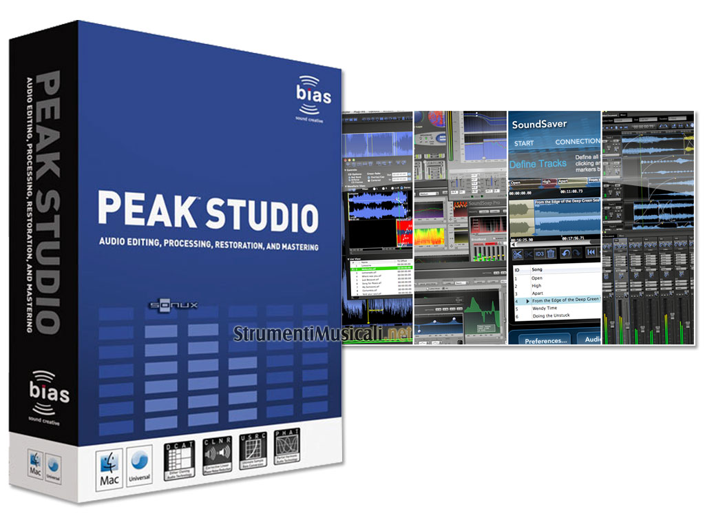 • Peak Studio integra al suo interno versioni personalizzate dei plug-in Bias SoundSoap 2, SoundSoap Pro 2, e della Master Perfection Suite, oltre ad una nuova versione di Sqweez - il compressore Bias che ora può funzionare anche come Limiter.