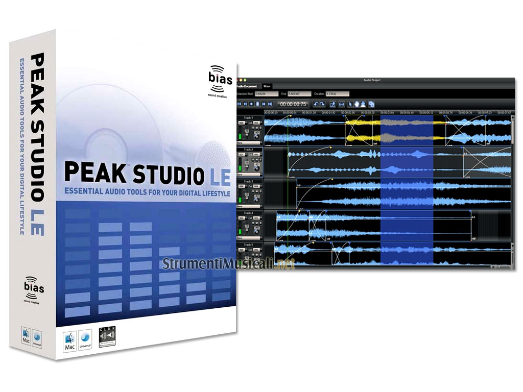 Peak Studio LE (lite edition) combina la potenza di editing audio di Peak LE 7 con strumenti software aggiuntivi per il restauro, l'analisi e l'elaborazione. Dalla registrazione audio stereo e l'archiviazione, l'editing di precisione dei campioni, la creazione di loop, sound design, podcasting, e CD mastering, Peak LE Studio offre molte funzionalità di base di Studio Peak - con un facile percorso di aggiornamento quando sei pronto per qualcosa di più.