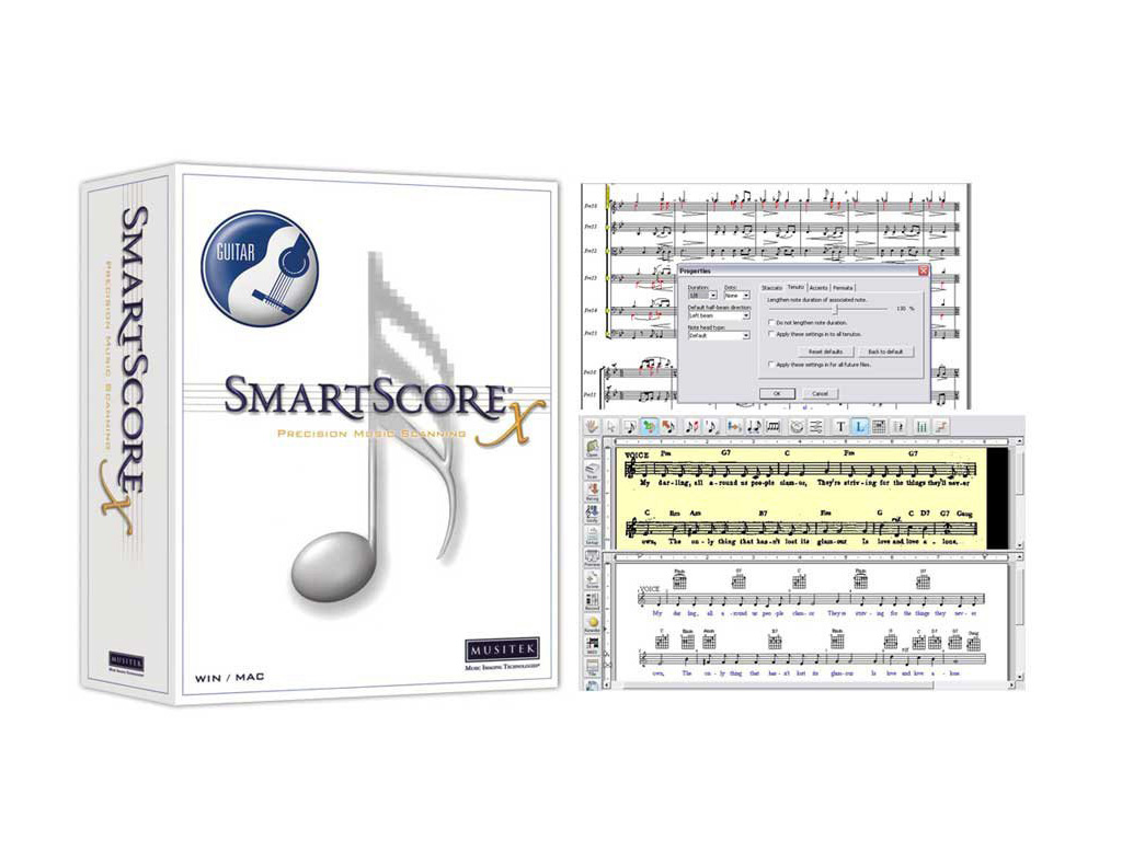 Noiosi spartiti con i nomi degli accordi scritti come testo vengono riconosciuti come simboli dei tasti di una chitarra. Riconoscimento intavolature multi-corda, innovativo TAB editing, conversione Notazione-TAB-Notazione con diteggiatura ottimizzata. Una libreria su misura di TAB accordature include slack key, dobro, pedal steel e molti altri TAB accordatura multi-corda. TAB a linea singola.