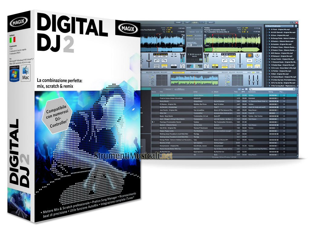 MAGIX Digital DJ 2 è il programma per DJ che offre tutto per mettere musica, eseguire scratch e remix. Creare dei DJ-set professionali e far rivivere in modo originale la tua collezione musicale. Trascina i tuoi brani preferiti con il mouse dal disco fisso o da iTunes, direttamente su uno dei piatti o nella playlist e sarai "ready to mix". E se nel DJ-set dovesse mancare qualche canzone, MAGIX Digital DJ 2, grazie alla straordinaria tecnologia integrata mufin, crea automaticamente una lista con brani dalla sonorità simile. In questo modo avrai sempre a disposizione la musica giusta per ogni occasione.