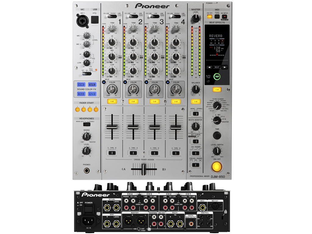 Il DJM-850 è perfettamente equipaggiato per la riproduzione "plug and play", con effetti preconfigurati di qualità professionale, accessibili al tocco di un pulsante. Il mixer vanta funzionalità creative degne di un software che, svincola i DJ dai loro laptop, e permette un DJing più naturale. Pioneer DJM-850 eredita la struttura high-end del modello club-standard DJM-900nexus di Pioneer e completa l'offerta con alcuni effetti innovativi. L'effetto Beat Colour del DJM-850, una prima assoluta nel settore, si avvale della tecnica di sidechaining per aggiungere un ulteriore livello di controllo ai semplicissimi effetti Colour di Pioneer. Il Beat Effect "ascolta" il segnale audio in ingresso da ciascun canale e collega le alterazioni di volume ad altri parametri, in modo che i DJ possano incorporare in maniera fluida nei loro mix nuovi suoni ed effetti. Inoltre, la scheda audio a 4 canali stereo integrata nel DJM-850 facilita enormemente la configurazione, poiché PC e laptop possono essere collegati tramite un unico cavo.