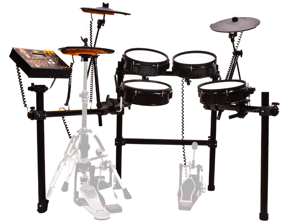 • Kit composto da 8 pezzi: Rullante, Cassa, 3 Tom, Ride, Crash e Hi-hat