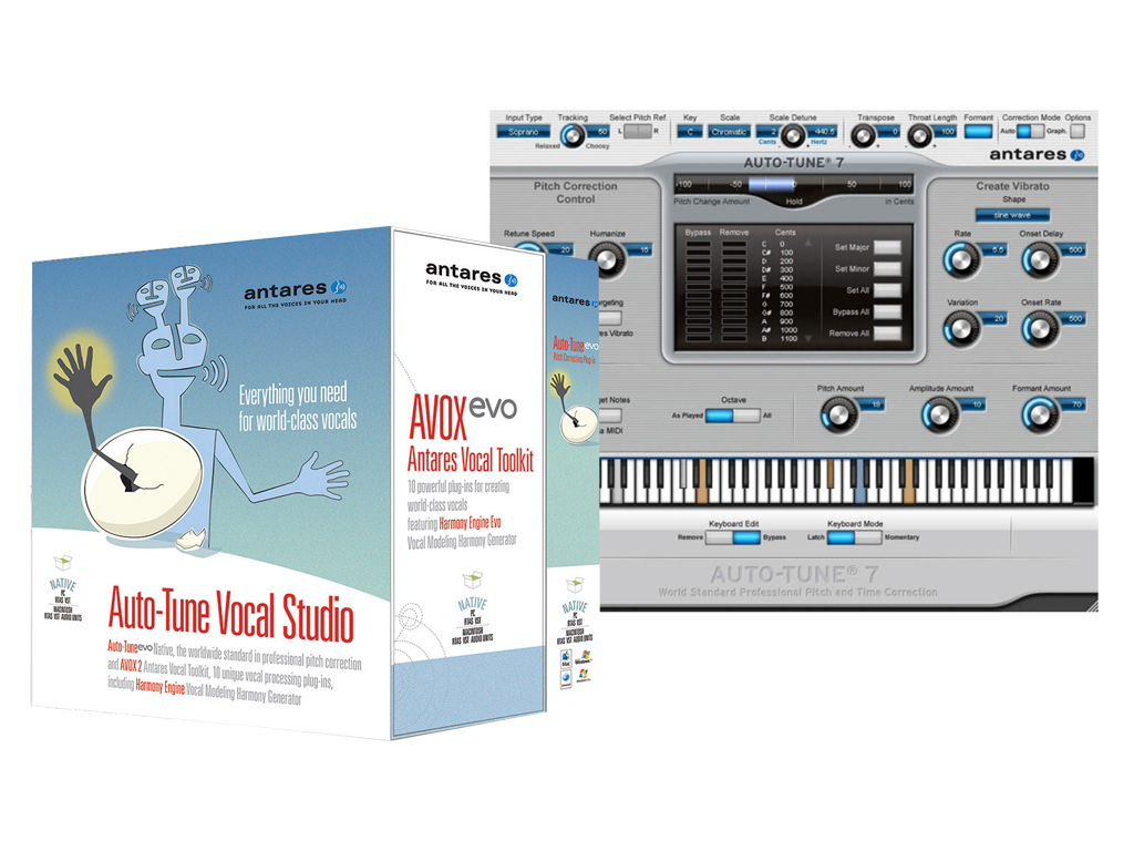 Auto-Tune Vocal Studio combina Auto-Tune 7 (Nativo), lo standard mondiale in campo professionale per la correzione dell'intonazione (e ora del tempo), con AVOX Evo, l'ultima generazione di Antares Vocal Toolkit (che ora include Harmony Engine Evo ). Insieme forniscono una suite di strumenti completa per la produzione di tracce vocali di prima classe. Basato sulla seconda potente versione del bundle di plug-in AVOX 2, AVOX evo aggiunge nuovi moduli per il processamento della voce, incluso l'ultimo software sviluppato da Antares Harmony Engine Vocal Modeling Harmony Generator, per fornire a musicisti, producer e ingegneri del suono, tutti gli strumenti necessari per creare tracce vocali di grande impatto, così come effetti per il sound design e per la post produzione. Auto-Tune sin dalla prima versione corregge errori d'intonazione di voci e strumenti solisti in tempo reale mantenendo ogni sfumatura espressiva dell'esecuzione originale - con una qualità audio così elevata che l'unica differenza che si può rilevare tra il segnale in entrata ed il segnale in uscita è proprio l'intonazione, il tutto con un'interfaccia grafica-utente chiara e semplice. Auto-Tune 7 aggiunge a tutto questo la nuova funzione Time Compression per la correzione e la manipolazione del timing e tutta una serie di novità da non perdere.