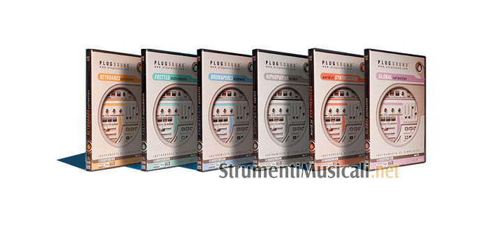 Plugsound Box raggruppa i sei plug-in individuali della serie permettendo di accedere all'intera libreria di 3,56 Gb ad un prezzo estremamente conveniente (inferiore del 50% rispetto al prezzo totale). Plugsound box è semplice da usare e ha un basso consumo di processore del vostro computer. Ogni singolo Plugsound è un virtual instrument basato su una libreria professionale ed è disponibile per Mac OS X (Audio Units, MAS, VST, RTAS), per Mac OS9 (VST, MAS, RTAS) e per Windows (VSTi, DXi, RTAS). Per PC è raccomandato l'uso di Windows XP.