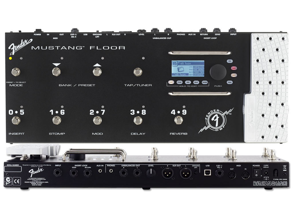 La nuova pedaliera Mustang Floor è la conseguenza naturale degli amplificatori della serie Mustang (in pratica, un Mustang senza finale e cassa), ed è stata specificatamente progettata per un gran numero di applicazioni, la piu' intuitiva delle quali è lo splendido multiffetto digitale, che mette ai vostri piedi più di tre dozzine di effetti di altissima qualità.La Mustang Floor è poi un potente preamplificatore a modelli fisici con uscite a bassa impedenza con speaker emulator per entrare direttamente in un impianto, uscite di linea per collegarla a un finale, uscita cuffie per esercitarsi in silenzio, ingresso ausiliario per poter jammare con un iPod o un qualunque lettore mp3, e uscita USB per la registrazione in streaming. La Mustang Floor è dotata di nove footswitch e di un robusto pedale d'espressione in alluminio, dell'intuitivo display LCD già visto sul pannello dei controlli del Mustang III, di 12 modelli di amplificatori, 37 effetti, 100 suoni preset, di modalità "individual stompbox" in cui è possibile bypassare il modello di amplificatore, di uscita cuffie e ingresso ausiliario, uscite XLR e jack dal ¼" con controllo di livello (le uscite possono essere tarate per una risposta ottimale con impianto voci, finale, o ampli per chitarra), accordatore cromatico, connettività USB con uscita a bassa latenza per la registrazione o la programmazione attraverso il software gratuito Fender FUSE. Il software Fender FUSE, incluso nel pacchetto e scaricabile gratuitamente, permette il controllo completa dei parametri su schermo, l'editing approfondito, l'utilizzo dei "parametri nascosti", il salvataggio di un numero di preset illimitato, l'aggiornamento firmware della macchina e l'accesso a un mondo di contenuti aggiuntivi Fender.