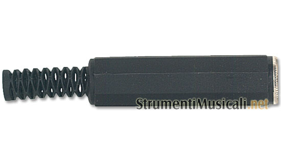 Presa volante jack stereo Ø 6.3 mm.-1/4” con manicotto in PVC e molla passacavo Ø 7 mm.