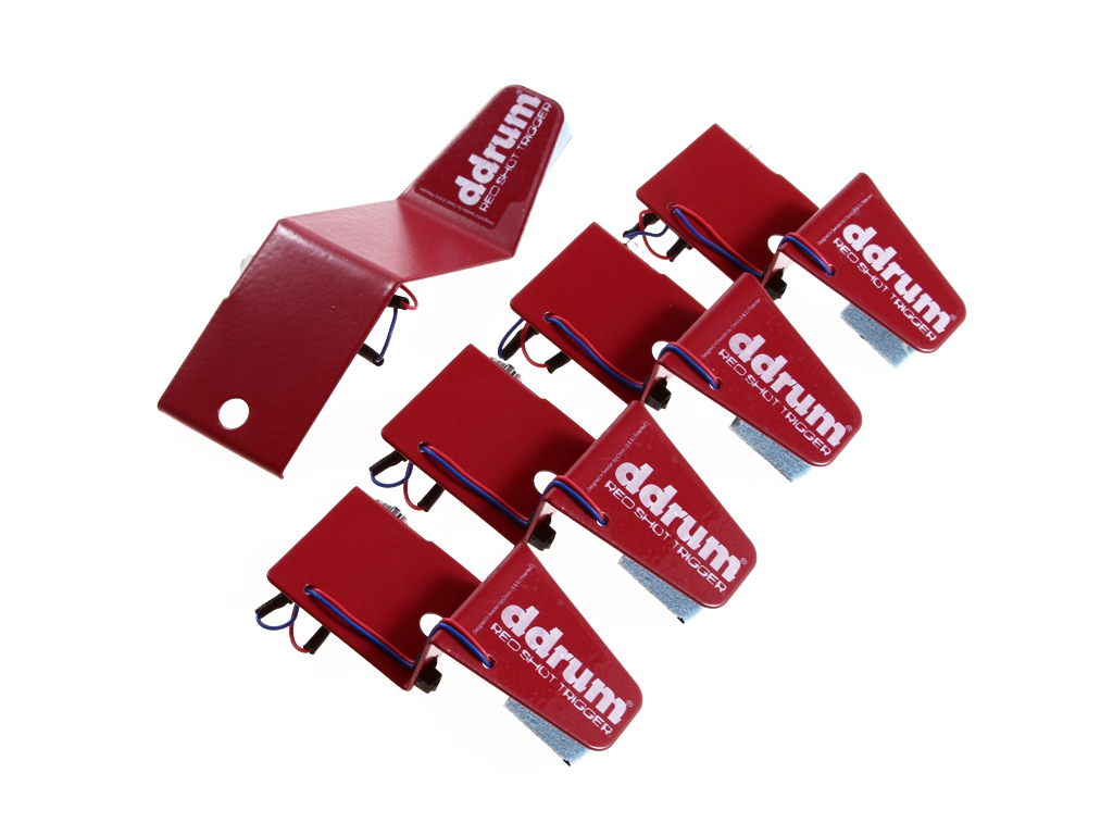 Il kit 5-Pezzi Red Shot Trigger di DDrum comprende 4 trigger Red Shot per tom/rullante e un Red Shot trigger per cassa. I Red Shot drum trigger sono robusti e si montano e rimuovono molto facilmente. Si collegano con qualsiasi cavo jack da 1/4" e si montano sulla maggior parte dei cerchi con tiranti standard senza bisogno di adesivi.