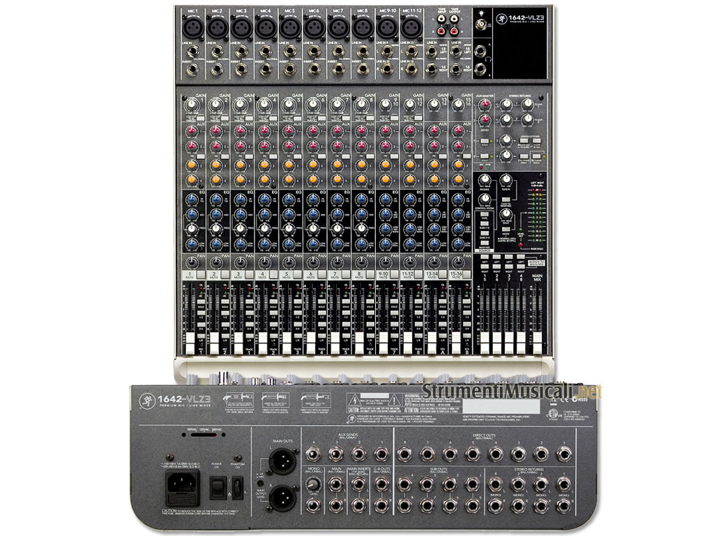 Con il suo nuovo look, circuiti preamplificatori ed EQ aggiornati, il nuovo Mackie 1642-VLZ3 ridefinisce il concetto di perfezione. Con le stesse caratteristiche e funzionalità del suo predecessore, il re-ingegnerizzato Mackie 1642-VLZ3 ha headroom ancora maggiore rispetto all'originale, bus Mix ridisegnato e apportato miglioramenti significativi all'EQ, dando al 1642-VLZ3 una sensazione più intuitiva e musicale. I tre unici formati di channel strip del 1642-VLZ3 permettono di inserire qualsiasi tipo e forma di segnale, tra cui microfono, linea, e strumenti stereo.