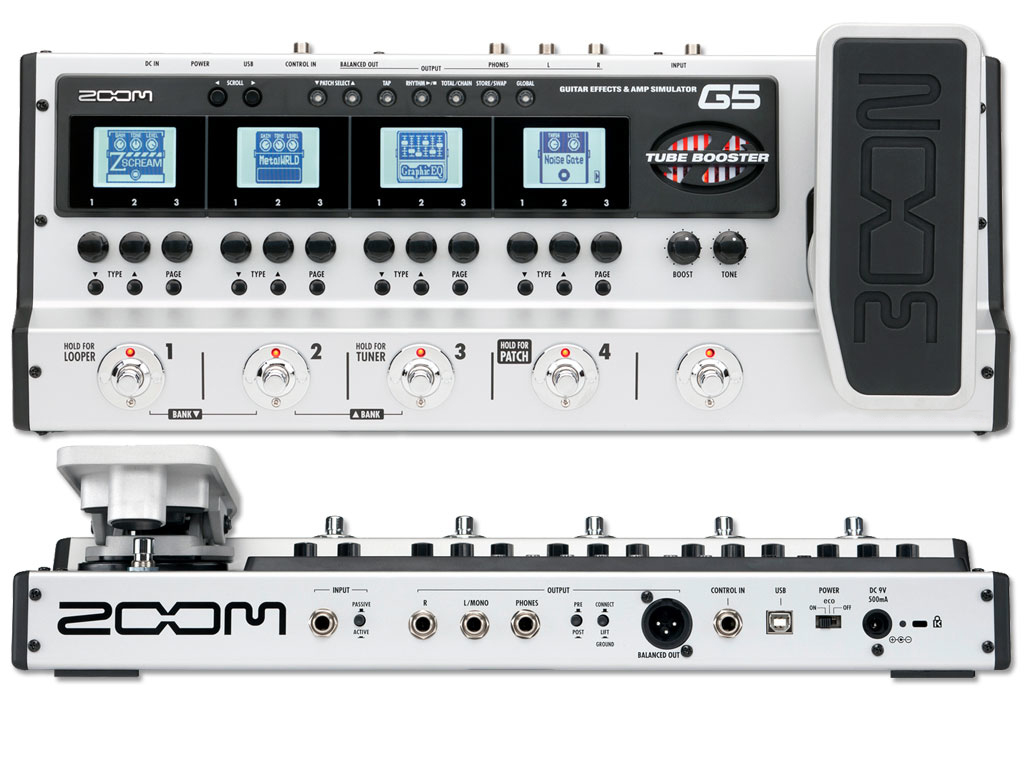 Lo Zoom G5 unisce la facilità d'uso di una pedaliera stompbox, la potenza di un multieffetti a pedale e di una interfaccia audio USB, assieme ad un display LCD extra, Tube Booster, 3D Z-Pedal e modelli aggiuntivi di amplificatori ed effetti.