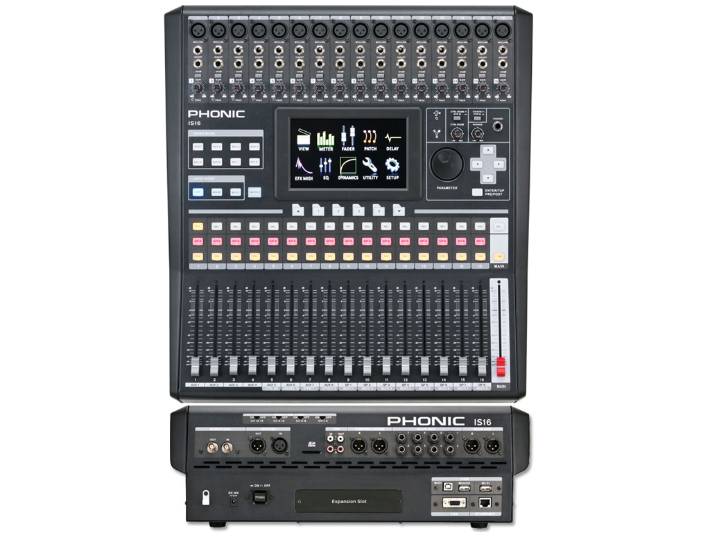 Il Mixer Digitale Phonic iS16 offre un numero incredibile di funzionalità professionali ad un prezzo accessibile. Sono inclusi 16 ingressi mono con ingressi microfonici XLR bilanciati a rumore incredibilmente basso e ingressi jack 1/4" per segnali line-level. Gli ingressi e le uscite digitali AES/EBU possono essere utilizzate per inviare e ricevere segnali da e per il Main mix. Gli output sono costituiti da 4 connettori bilanciati XLR per i segnali Main e Control Room, mentre otto connettori jack bilanciati da 1/4" costituiscono il multi-output. EQ incredibilmente preciso, EFX e capacità di elaborazione dinamica controllabile attraverso un touch-screen a colori. Le dimensioni ed il peso ridotti del mixer permettono una facile mobilità rendendo l'iS16 ideale per esibizioni dal vivo o installazioni permanenti in studi professionali.