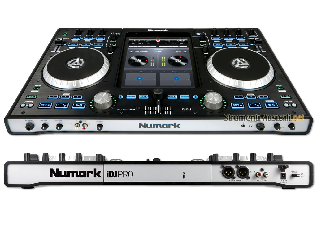 L'iDJ Pro della Numark è un controller professionale per DJ dedicato ai possessori di iPad, che espanderanno così le potenzialità del touch screen che ha reso famoso il tablet di casa Apple, grazie a dei controlli e a funzionalità più adeguate per il mixaggio professionale stile DJ. iDJ Pro è costruito attorno ad una scocca di allumino satinato ed è equipaggiato di tutti i controlli di cui un DJ necessita durante le performance. Combinando il design Numark alle potenzialità dell'iPad della Apple, l'iDJ Pro mette al centro di un classico layout di una console per DJ il dock a 30pin per l'inserimento dell'iPad. In questo modo, oltre a disporre comodamente delle funzioni accessibili dal touch screen dell'iPad, disporrai di 2 wheel sensibili al tocco per lo skratch, la ricerca e il puntamento del CUE, due larghi potenziometri rotativi per il controllo del volume, un potenziometro per la ricerca delle tracce audio nella tua libreria musicale, controlli hot cue, loop, fader del pitch e sezione effetti. Una volta inserito il tuo iPad nel dock, questo sarà bloccabile mediante un fermo, per una integrazione totale e sicura durante le tue esibizioni. Grazie alla connettività wireless dell'iPad avrai un accesso praticamente illimitato per espandere la tua libreria di brani in qualsiasi momento e luogo. iDJ Live si interfaccia perfettamente con la famosa e diffusissima applicazione di mixaggio djay della Algoriddim, premiata nel 2011 con l'Apple Design Award. Compatibile con AirPlay, potrai inoltre diffondere i tuo mixati sui diffusori compatibili con questo standard, senza la necessità di collegare cavi. iDJ PRO è pronto all'uso e collegabile al tuo impianto di diffusione audio tradizionale con uscite XLR bilanciate e dispone inoltre di ingressi AUX stereo RCA e Mic Jack da ¼" per il collegamento di microfoni e altre sorgenti esterne (CD-Player, ad esempio).