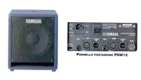 Lo Yamaha PSW12 è un subwoofer modulare che con le doppie linee di ingresso e di uscsita permette il rinforzo delle basse frequenze sia in stereo che in mono, offrendo anche il segnale in uscita ottimizzato per i satelliti (che possono essere due casse attive). La potenza di uscita è di 300W con bass-reflex, pressione sonora: 122 dB spl, woofer da 12".